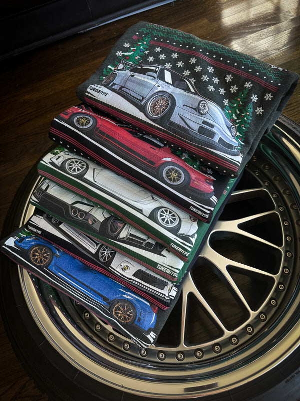 It's simple: I wanted an Ugly Christmas Sweater that is actually pretty cool. I draw these myself, inspired by my favorite car builds.